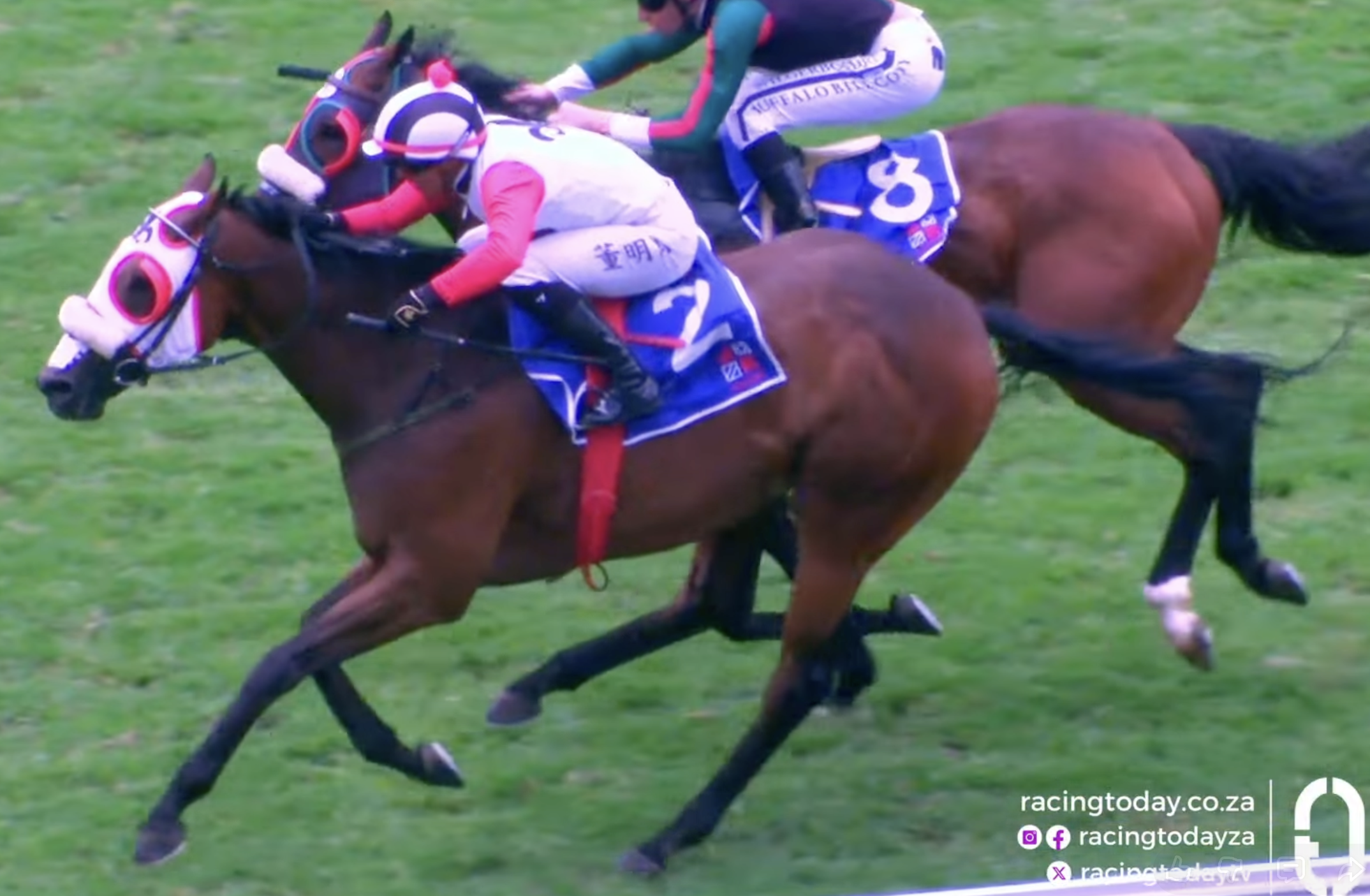 RACE 6 – 14:55 (SAST) BETWAY SUMMER PUDDING HANDICAP (Listed) 1600m | NO. 16 MERRYWEATHER | Wernars Family & T Gujadhur | 3rd: R47,500 | 2.50 | 102.16 finish time 101.73 winner time | GAVIN LERENA (59 KG) | |